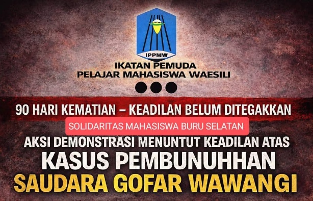 RadarMaluku.id, Ambon – Ikatan Pemuda Pelajar Mahasiswa Waesili (IPPMW) dijadwalkan menggelar aksi unjuk rasa damai di depan Markas Kepolisian Daerah (Polda) Maluku, Kota Ambon, pada Kamis, 5 Februari 2026. Aksi ini dilakukan sebagai bentuk solidaritas dan desakan atas lambannya penanganan kasus pembunuhan Gofar Wawangi, warga Desa Waesili, Kecamatan Waesama, Kabupaten Buru Selatan.